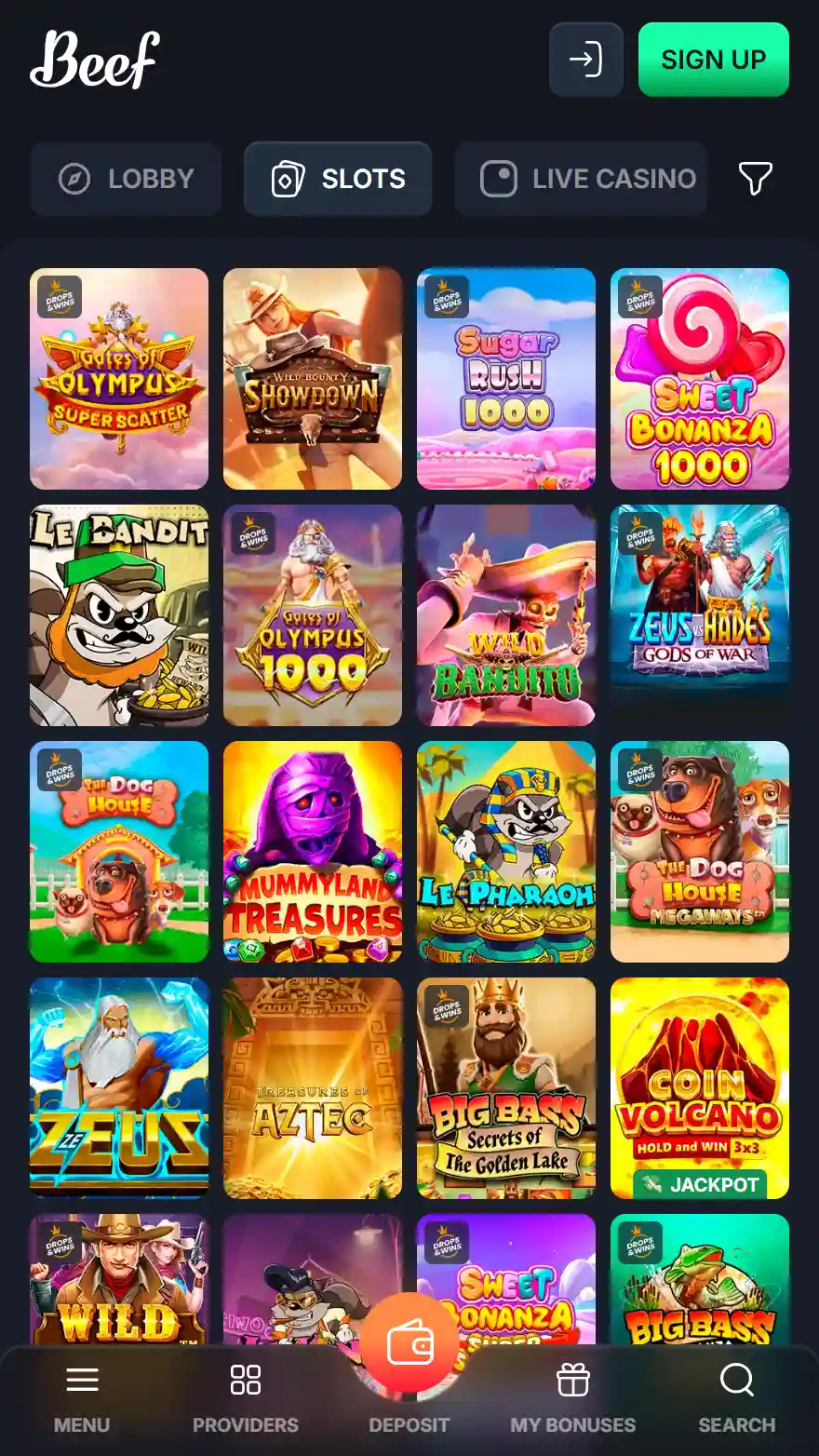 Lai mänguvalik ja live-diilerid